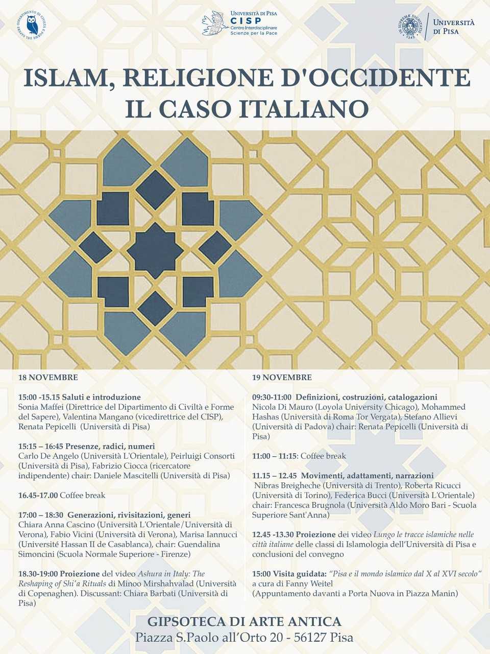 Il convegno, che ha il patrocinio del Centro Interdisciplinare Scienze per la Pace, intende analizzare la formazione dell’islam italiano all’interno della più ampia cornice dell’islam in Occidente, attraverso un approccio interdisciplinare che intreccia storia, sociologia, diritto, antropologia e studi religiosi.