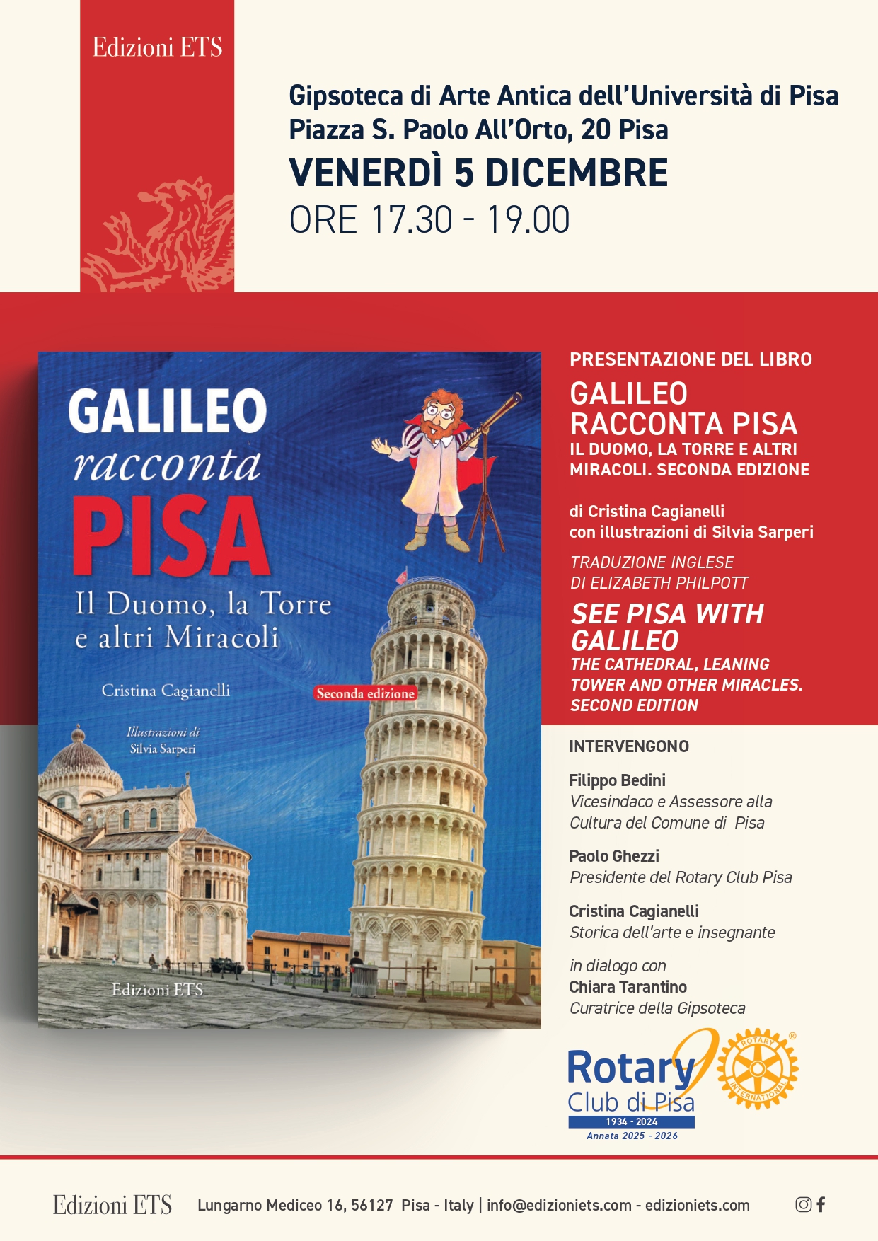 5 dicembre ore 17,30 presentazione del libro “Galileo racconta Pisa. Il Duomo, la Torre e altri Miracoli” Gipsoteca di Arte Antica 5 Dicembre 2025