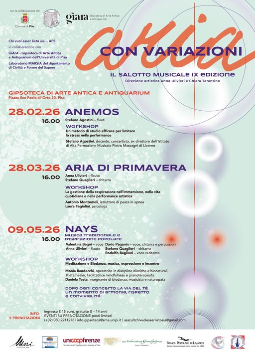 IL SALOTTO MUSICALE IX edizione “Aria con variazioni” nel suggestivo contesto della Gipsoteca di Arte Antica e Antiquarium di Pisa
